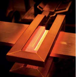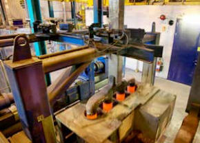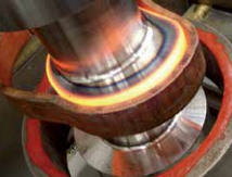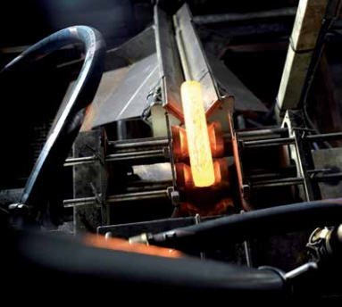 Zahřátý ocelový sochor v kovací stanici od společnosti EFD Induction.