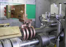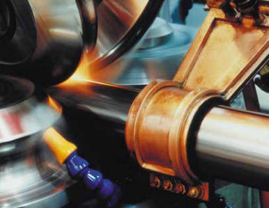 Hřídel pohybující se vysokou rychlostí přes indukční cívku. Indukční popouštění nemá ve své rychlosti a přesnosti konkurenci.